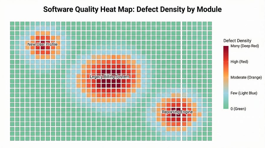 The payment processing module, which represented about fifteen percent of the total codebase, contained fifty-three of the seventy-two total defects found. That’s seventy-three percent of all bugs in fifteen percent of the code. The cluster was undeniable.