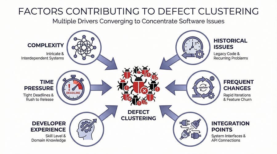 Defect clustering isn’t random — there are specific, identifiable reasons why bugs congregate in certain areas.