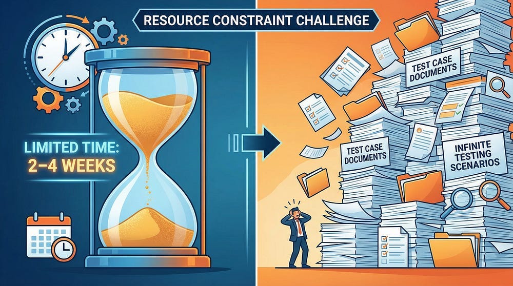Even if you could define all test scenarios, practical reality intervenes. Development cycles are measured in weeks, not years. Testing budgets are finite and often tight. Team sizes are limited by hiring and budget constraints. Market windows close as competitors release features. Customer expectations demand timely delivery. You have days or weeks to test what would take lifetimes to test exhaustively.