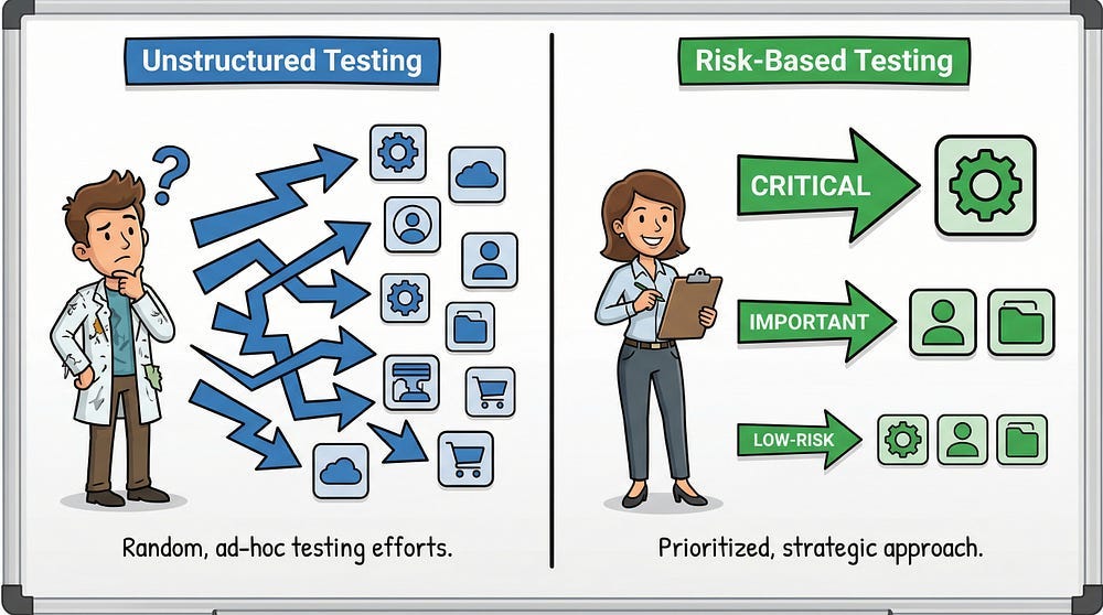Not all bugs are equally important. A critical payment processing bug is more important than a cosmetic misalignment. Risk-based testing acknowledges this and allocates testing resources accordingly.
