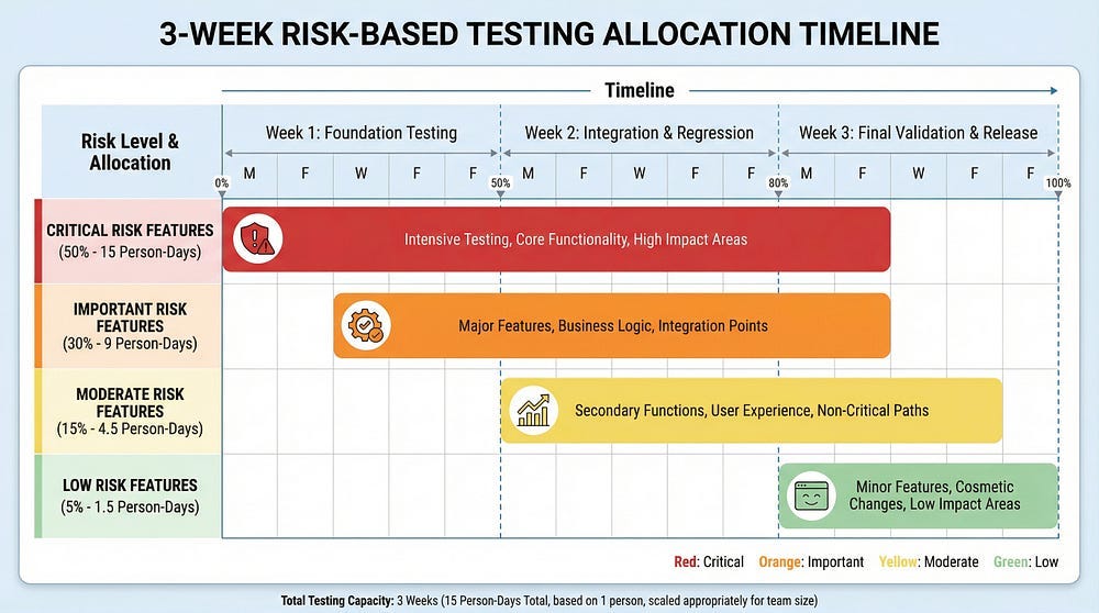 To Management: “Given our 2-week testing window, here’s where we’re allocating resources and why. These are the areas we’re testing comprehensively, these moderately, and these minimally. Here are the conscious trade-offs we’re making…”