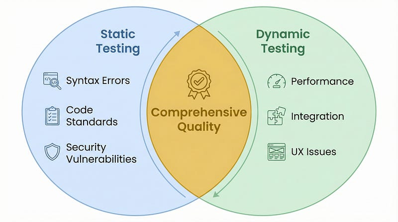 But here’s the critical insight: they find different bugs. Static testing excels at finding structural issues early, while dynamic testing catches behavioral problems that only emerge during execution. Using both approaches provides significantly better coverage than either alone.