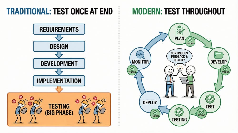 Welcome back to NextGen QA! In our previous articles, we’ve explored what testing is, the guiding principles, the difference between testing and debugging, and the psychology behind effective testing. Today, we’re tackling one of the most important concepts in software quality: when you test matters just as much as how you test.